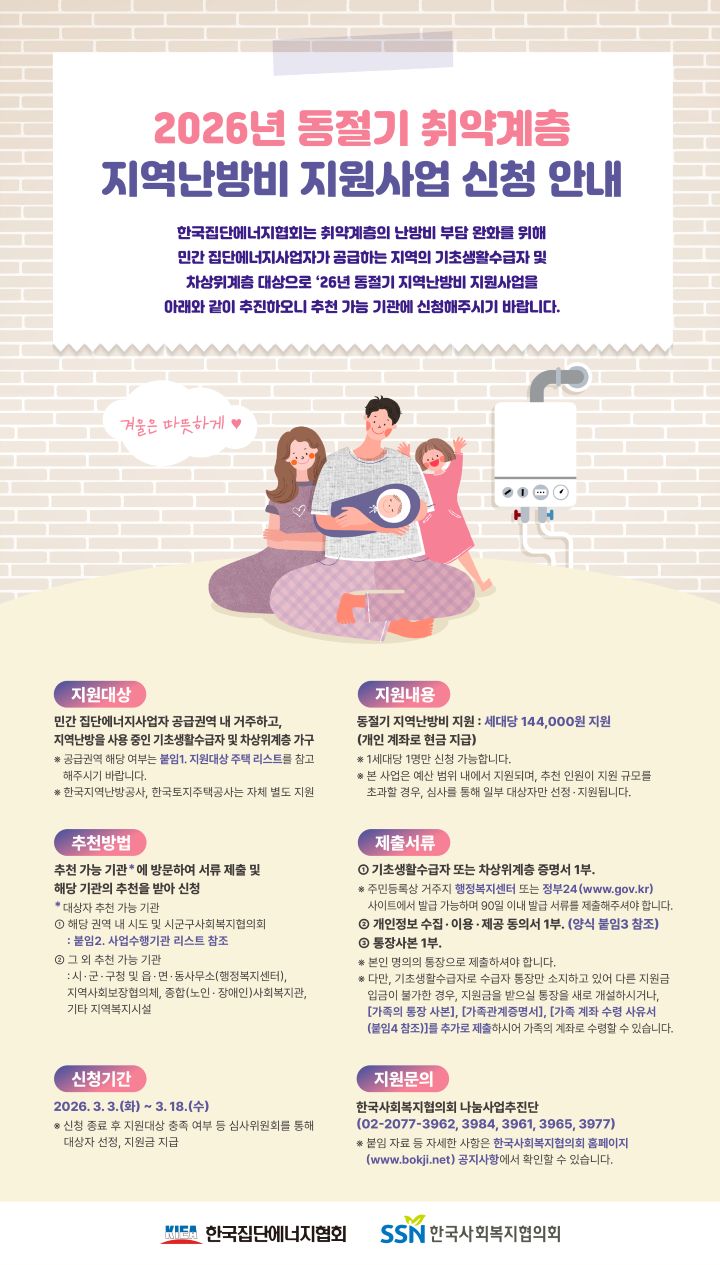 2026년 동절기 취약계층 지역난방비 지원사업 안내